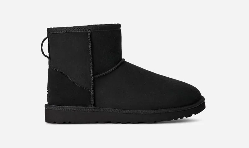 Born on the beaches of California, our Classic Boot was originally made to keep surfers warm after early-morning sessions and has since become an icon of West Coast cool. It's crafted with our famously soft sheepskin, which naturally wicks away moisture and regulates heat, so you can wear it anywhere - both indoors and out.The outsole of this product is either a sugarcane EVA outsole, which is a responsible compound using sugarcane foam that allows us to reduce dependency on fossil fuels by replacing petroleum-based ethylene, or a Treadlite by UGG® outsole.This product was made in a factory that supports women in our supply chain with the help of Reimagining Industry to Support Equality (RISE). This collaborative initiative creates partnerships with brands like ours to empower and educate women in the workplace. Protected: Post Applied Treatment. Topically applied water repellency treatment. 17mm Twinface sheepskin upper. Suede heel counter, Rear pull tab. 17mm UGG®plush 80% upcycled wool, 20% TENCEL Lyocell insole or 17mm UGG®plush 60% upcycled wool, 40% TENCEL Lyocell insole. Foam footbed. Sugarcane EVA outsole or Treadlite by UGG® EVA outsole. Textile binding made from 100% recycled polyester fibers. Woven heel label with The UGG® Logo. RN 88276. This product contains real fur from sheep or lamb. Fur may be sourced from Australia, Ireland, the United Kingdom, or the United States. It has been artificially dyed and treated.. UGG® Men's Classic Mini Sheepskin Classic Boots in Black/, Size 12