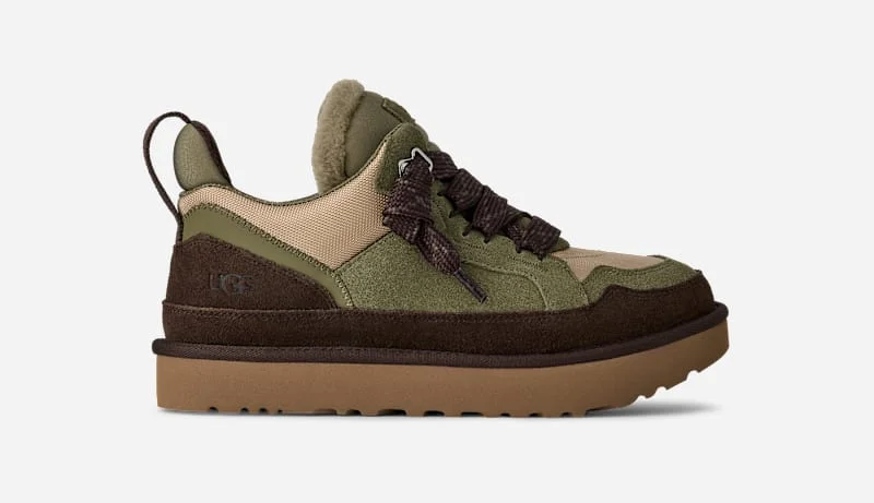 We see you out there in your evolution era. Catch us in ours. Our Lowmel gives nostalgic West Coast vibes in the best way. The chunky round laces are a inchmoment inch designed to be worn open and loose. We've gone for soft materials that call back to classic sneakers. Crafted with suede and textile upper, we've added a mesh vamp for warm-weather wearability. Set on a molded footbed and sugarcane EVA outsole for premium comfort.This product was made in a factory that supports women in our supply chain with the help of Reimagining Industry to Support Equality (RISE). This collaborative initiative creates partnerships with brands like ours to empower and educate women in the workplace. Suede, Textile made from 100% recycled nylon fibers upper. Webbing heel strap, The UGG® Logo patch, Padded collar, Oversized padded tongue. Laces made from 100% UNIFI recycled polyester fibers, Two-tone flat lace. Polyester mesh lining made from 55% coffee charcoal modified polyester and 45% regular polyester, 10mm UGG®plush 60% upcycled wool, 40% lyocell lining. 10mm UGG®plush 60% upcycled wool, 40% TENCEL Lyocell insole. EVA footbed. Sugarcane EVA outsole. The UGG® Logo, embossed. Additional set of laces included. RN 88276. UGG® Men's Lowmel Suede/Textile/Recycled Materials Shoes in Burnt Olive/Mustard Seed, Size 12