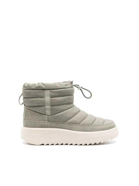 Maxxer Mini boots Highlights - Moss green - Wool blend - Padded design - Ankle-length - Logo patch to the rear - Pull-tab at the heel - Top drawstring fastening - Round toe - Branded insole - Platform sole - Faux-fur lining Imported Composition Outer: Fabric 100%, Polyurethane 100% Lining: Recycled Polyester 100%, Wool 60%, Lyocell 40% Sole: Rubber 100% SIZE & FIT Measurement CIRCUMFERENCE 14.96 in(38 cm) HEEL 1.96 in(5 cm) HEIGHT 5.11 in(13 cm) Sole height 1.37 in(3.5 cm)