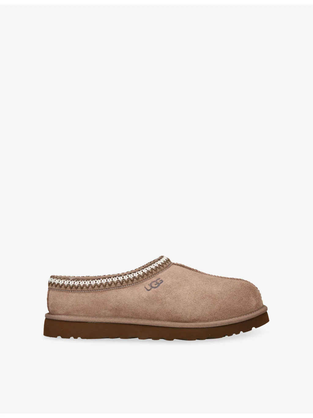 PRODUCT DETAILS - UGG suede slippers - 100% suede; 100% shearling - Round closed toe, embroidered braid, nylon binding, shearling insole, flat sole - Specialist leather clean - Upper: 100% suede - Lining: 100% shearling - Sole: 100% rubber Ref: R04523692