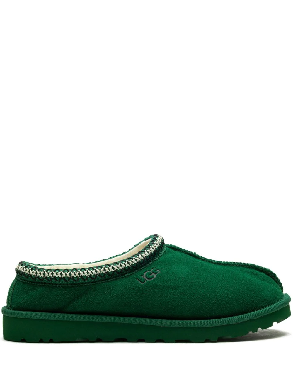 Tasman "Monstera" slippers Highlights - Forest green - Suede - Embroidered edge - Debossed logo to the side - Round toe - Shearling lining - Rubber sole Imported Composition Lining: Polyethylene vinyl acetate (PEVA) 100%, Recycled Wool 60%, TENCEL™ Lyocell (LENZING) 40% Outer: Suede 100%, Recycled Polyester 100%