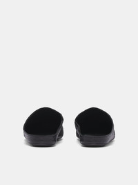 UMA WANG slides in black, calf leather construction, low-top, slip-on style, open heel, squared toe, rubber & branded sole, lined. Made in Italy 100% Calf Leather European Sizing