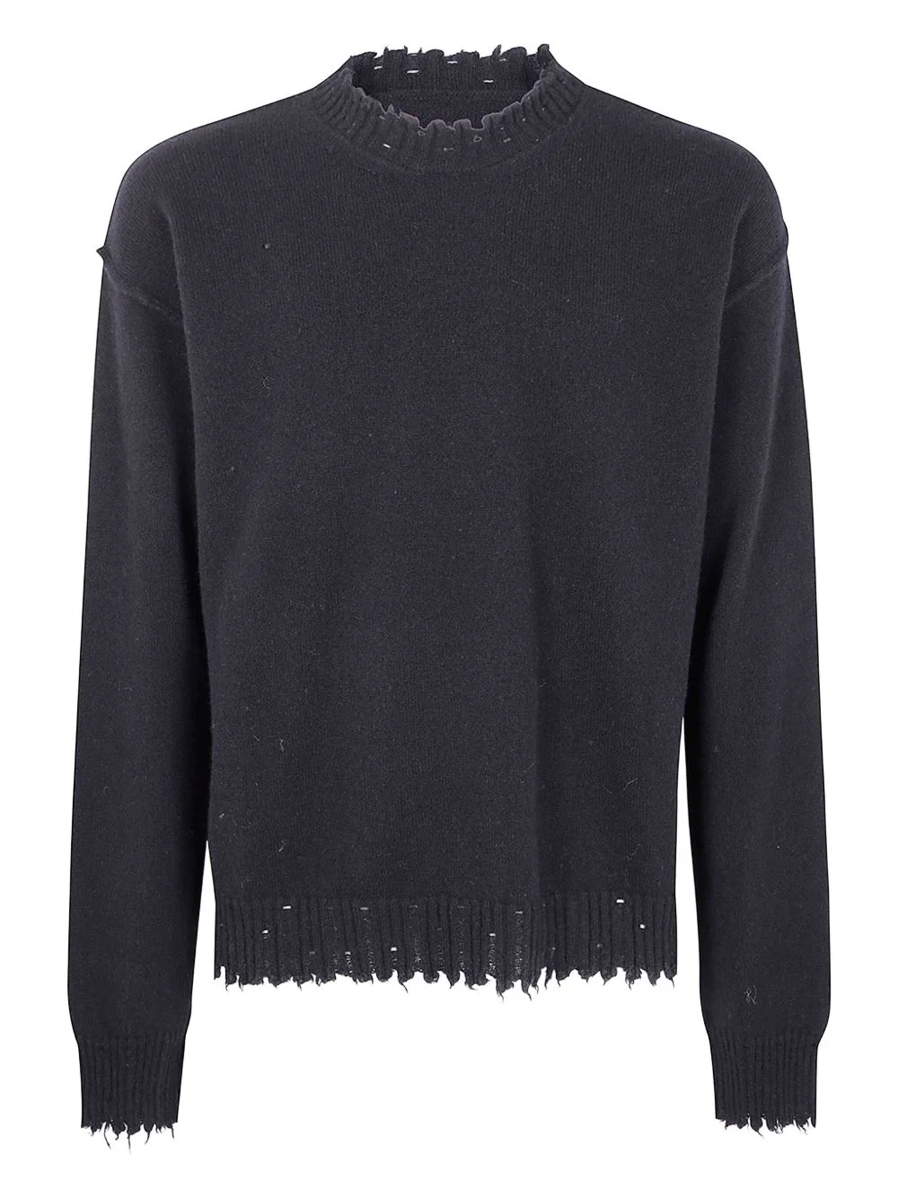 frayed-hem cashmere sweater Highlights - Washed black - Cashmere wool - Frayed hem - Crew neck - Raw edges - Small-red square detail at the back Imported Composition Cashmere 100% Washing instructions Read Manufacturer Guidelines