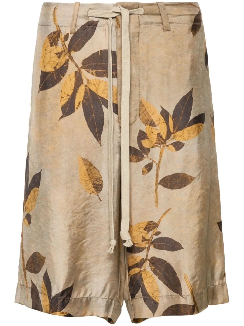 branches-print shorts Highlights - Brown - Twill weave - All-over branches print - Belt loops at the waist - Two side inset pockets - Two rear welt pockets - Internal logo tag - Thigh-length - Front button fastening - Drawstring fastening Made in Italy Composition Cupro 50%, Viscose 50% SIZE & FIT Model measurements Height 6 ft 1 in(1.86 m) Bust/Chest 37.4 in(95 cm) Hips 36.22 in(92 cm) Waist 29.52 in(75 cm) FittingInformation Designed for relaxed fit, offering a comfortable loose fit over the leg Adjust this piece’s waistband to your preference using the drawstring Made from a lightweight non-stretch fabric This piece fits true to size – take your usual size Washing instructions Hand Wash