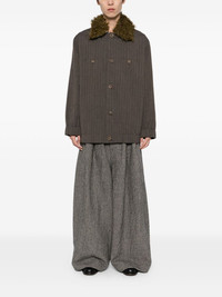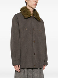 faux fur-trim shirt jacket Highlights - Dark brown - Front button fastening - Button-fastening chest pocket - Two side inset pockets - Elasticated cuffs Made in Italy Composition Lining: Cotton 100% Outer: Cotton 51%, Virgin Wool 49% SIZE & FIT Model measurements Height 6 ft 2 in(1.87 m) Bust/Chest 33.07 in(84 cm) Hips 35.43 in(90 cm) Waist 26.77 in(68 cm) FittingInformation Designed for a relaxed fit, this piece allows for comfort and movement when worn The elasticated hem allows for movement and a comfortable fit Made from a heavyweight non-stretch fabric Washing instructions Hand Wash