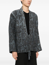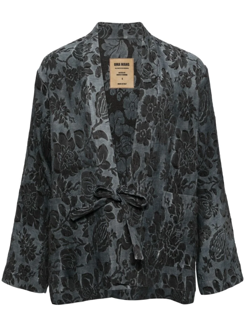 jacquard jacket Highlights - Teal blue - Linen-cotton-silk blend - Patterned jacquard - Shawl lapels - Front tie fastening - Drop shoulder - Long sleeves - Two front patch pockets - Straight hem Made in Italy Composition Linen/Flax 61%, Cotton 37%, Silk 2% SIZE & FIT Model measurements Height 6 ft 2 in(1.87 m) Bust/Chest 34.25 in(87 cm) Hips 36.22 in(92 cm) Waist 29.52 in(75 cm) FittingInformation Designed to be unstructured, offering a loose fit throughout The tie fastening gives an adaptable and personalised fit Made from a midweight non-stretch fabric This piece fits true to size – take your usual size