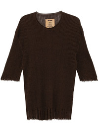 knitted T-shiet Highlights - Brown - Ribbed knit - Crew neck - Three-quarter length sleeves Made in Italy Composition Outer: Cotton 70% Silk 30%