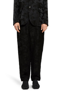 DESCRIPTION - Black - Satin floral jacquard - Belt holes - Button closure - Side pockets - Drop crotch - Back buttoned pockets - Tapered leg DETAILS - Made in: Italy - Composition: 56% Linen 44% Viscose - Model code: UM3518 UW900 - Item ID: 9273328566614