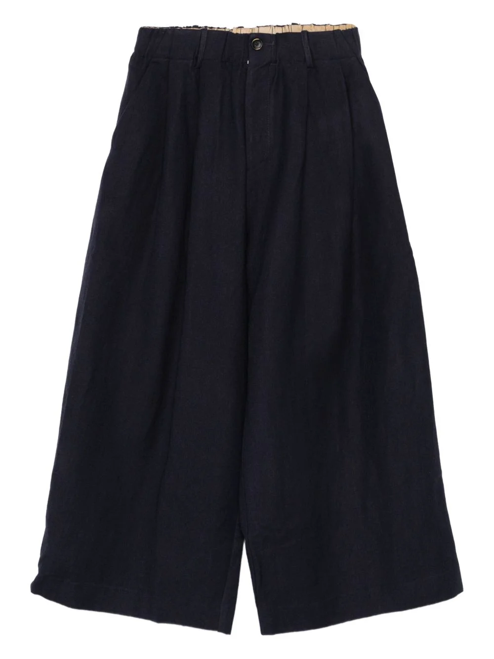 pleated trousers Highlights - Dark blue - Elasticated waistband - Button fly Imported Composition Fabric 100% SIZE & FIT Model measurements Height 6 ft 0 in(1.84 m) Bust/Chest 35.82 in(91 cm) Hips 37 in(94 cm) Waist 28.34 in(72 cm) Washing instructions Read Manufacturer Guidelines