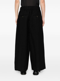 pleated wide-leg trousers Highlights - Black - Button fly fastening - Elasticated waistband - Two side slash pockets - Two rear button-fastening pockets Made in Italy Composition Linen/Flax 59%, Virgin Wool 41% SIZE & FIT Model measurements Height 6 ft 2 in(1.87 m) Bust/Chest 33.07 in(84 cm) Hips 35.43 in(90 cm) Waist 26.77 in(68 cm) FittingInformation Designed with a wide leg, offering a loose and roomy fit The partially elasticated waistband offers increased movement and comfort at the waist Made from a midweight non-stretch fabric Washing instructions Hand Wash