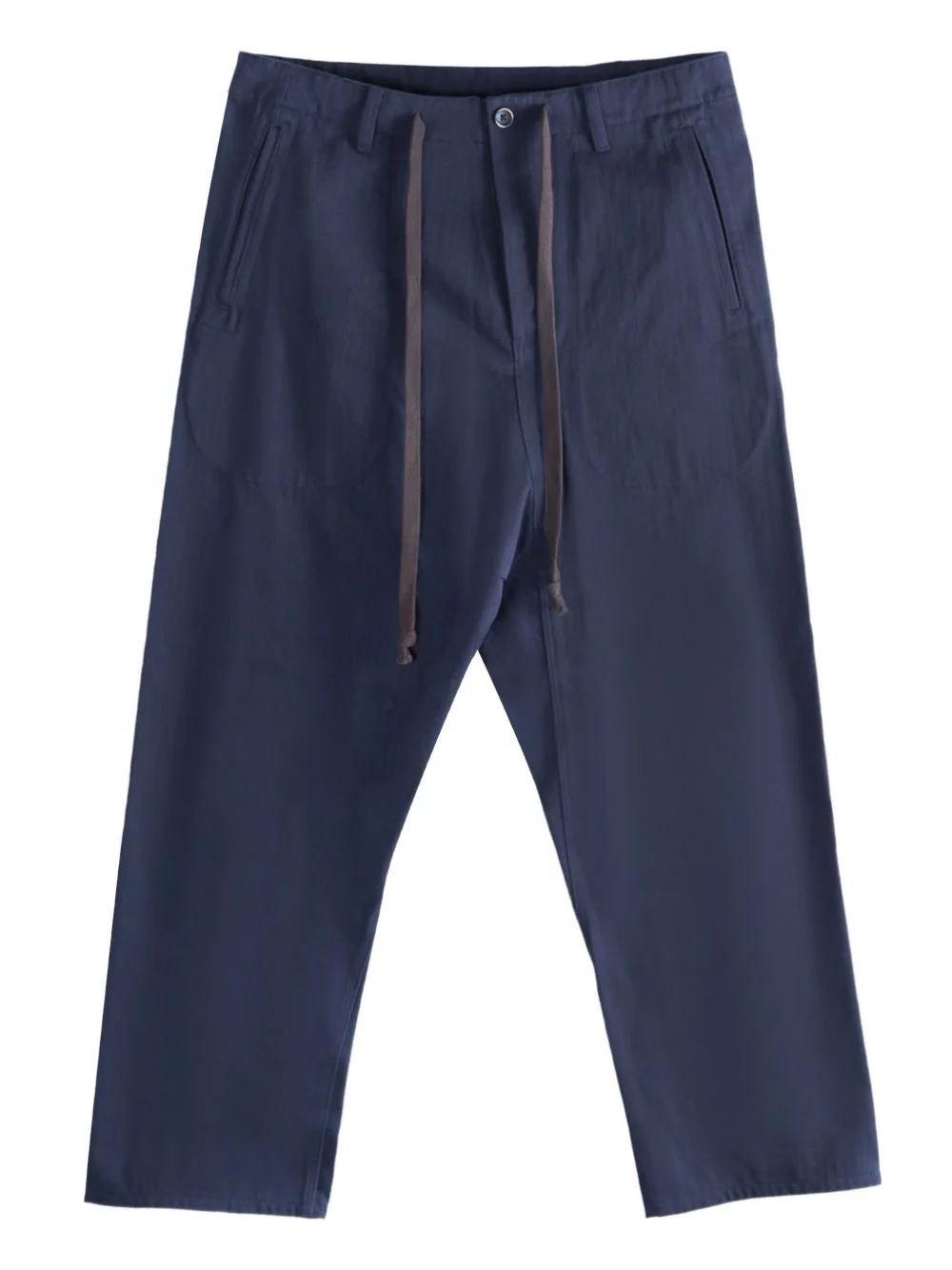drawstring pocket trousers Highlights - Dark blue - Pinstripe pattern - Drawstring fastening - Side pockets - Button fly - Flat front Made in Italy Composition Cotton 100% Washing instructions Read Manufacturer Guidelines