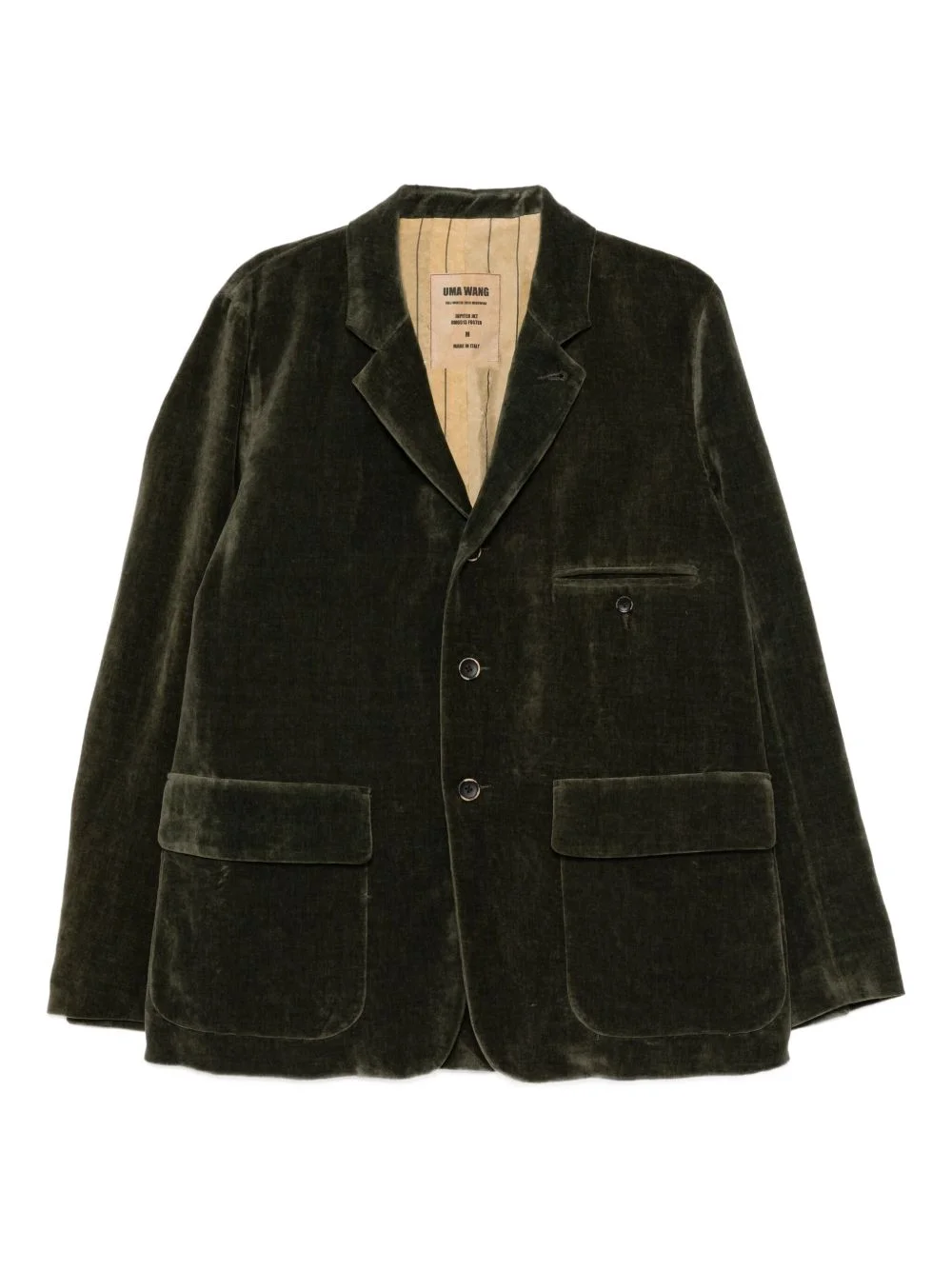velvet blazer Highlights - Khaki green - Front button fastening - Button-fastening chest pocket - Two side flap pockets Made in Italy Composition Lining: Viscose 50%, Cupro 50% Outer: Cotton 55%, Linen/Flax 45% SIZE & FIT Model measurements Height 6 ft 2 in(1.87 m) Bust/Chest 33.07 in(84 cm) Hips 35.43 in(90 cm) Waist 26.77 in(68 cm) FittingInformation Designed to be unstructured, offering a loose fit throughout The internal shoulder pads offer a structured shape Made from a midweight non-stretch fabric