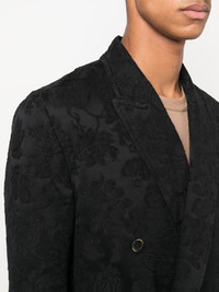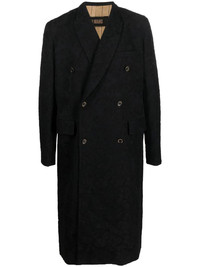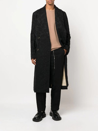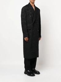 velvet effect double breasted coat black velvet effect peak lapels double-breasted button fastening long sleeves buttoned cuffs chest welt pocket two front flap pockets mid-length Made in Italy Composition Outer: Cotton 52%, Virgin Wool 48% Lining: Cupro 50%, Viscose 50% SIZE & FIT Model measurements Height 6 ft 2 in(1.87 m) Bust/Chest 38.18 in(97 cm) Hips 36.61 in(93 cm) Waist 29.13 in(74 cm) FittingInformation This piece fits true to size. We recommend you get your regular size Cut for a loose fit Made with a mid-weight non-stretch fabric