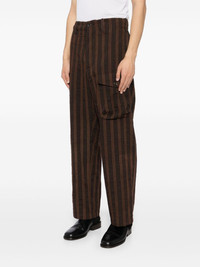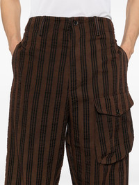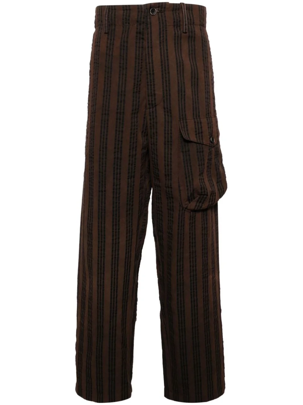 vertical-stripe drop-crotch trousers Highlights - Coffee brown/black - Button fastening - Belt loops - Side flap pocket - Rear welt pocket - Vertical stripe pattern - Straight hem Made in Italy Composition Viscose 52%, Cotton 34%, Polyamide 14% SIZE & FIT Model measurements Height 6 ft 2 in(1.88 m) Bust/Chest 34.25 in(87 cm) Hips 34.64 in(88 cm) Waist 26.77 in(68 cm) FittingInformation Designed for a relaxed straight leg, allowing a comfortable and loose fit over the leg The partially elasticated waistband offers increased movement and comfort at the waist Made from a midweight non-stretch fabric