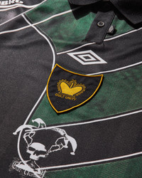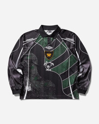 Umbro 95 96 Longsleeve Polo Dark Green / Black For Autumn/Winter 2025, long-term partners Slam Jam and Umbro unveil a bold new collection, seamlessly blending the distinguished tailoring traditions of Britain and Italy with the dynamic energy of sportswear. “Cult Unity” serves as the defining motif, celebrating the fusion of these two iconic cultures. - 100% Polyester - Loose Fit - Classic Collar - Two-Button Placket - Contrasting Piping - Trompe L'oeil Print - Embroidered Logo Patch at Chest - Ribbed Cuffs - Style Code: UBMW0403FA252 GRN0052