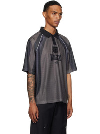 Perforated mesh polo. · Rib-knit spread collar · Two-button placket · Embroidered logo patch at chest · Logo and text printed at front and sleeves · Piping at raglan sleeves Supplier color: Army Green 100% polyester. Made in Portugal 251207M212002