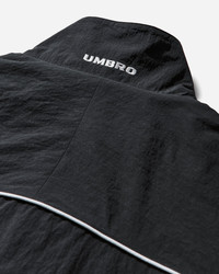 Umbro Eyes Track Jacket Carbon Black This collection explores physicality through a shared vocabulary of sport and subculture. Drawing on terms such as defence, offence, volume, and noise, it highlights the parallels between athletic performance and the raw energy of British terrace and sound-driven movements. Rooted in British heritage and uniform, the pieces merge functional influences with the off-pitch attitude. - 100% Polyamide - Lining: 100% Polyester - Loose Fit - Raglan Sleeves - Stand-Up Collar - Zip Closure - Two Side Pockets - Embroidered Logo - Elasticated Cuffs and Hem - Style Code: UBMW0479FA309 BLK0002