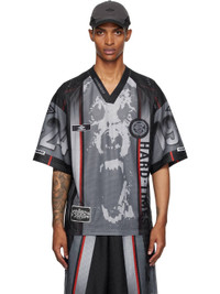 Perforated mesh jersey. · Logo graphics printed throughout · V-neck · Logo patch at front hem Supplier color: Black 100% polyester. Made in Portugal 251207M213006
