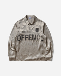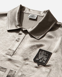 Umbro Satin Enfield Shirt Silver Pearl This collection explores physicality through a shared vocabulary of sport and subculture. Drawing on terms such as defence, offence, volume, and noise, it highlights the parallels between athletic performance and the raw energy of British terrace and sound-driven movements. Rooted in British heritage and uniform, the pieces merge functional influences with the off-pitch attitude. The result is a collection defined by intensity, expression, and the collision of discipline and defiance. - 100% Acetate - Lightweight Satin Fabric - Regular Fit - Classic Collar - Two-Button Placket - Embroidered Logo and Crest - Printed Graphic - Adjustable Cuffs - Style Code: UBMW0512FA336 GRY0009