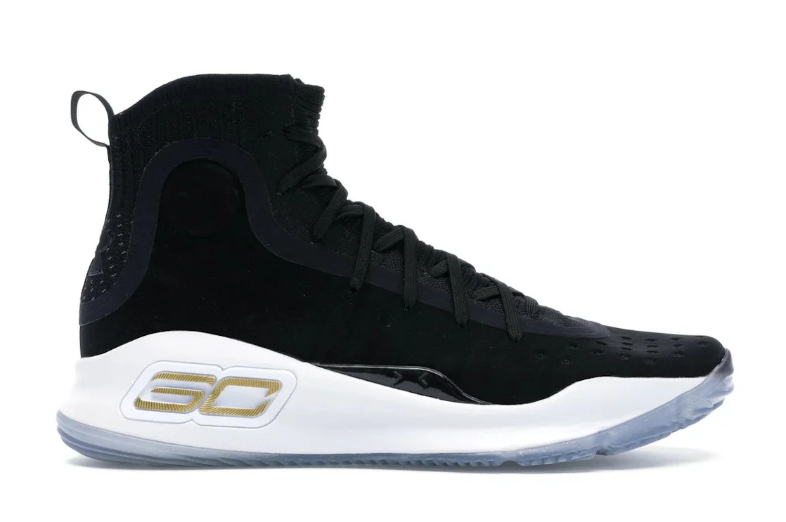 The Under Armour Curry 4 More Dimes is a basketball shoe designed for performance and style. It features a breathable mesh upper with synthetic overlays for support and durability. The shoe also has a sock-like construction for a snug fit and a responsive midsole for cushioning and energy return. The outsole is made of rubber with a herringbone pattern for traction on the court. The colorway is predominantly black with white and gold accents, giving it a sleek and sophisticated look. The release date for this shoe was December 16, 2017, and it retailed for $130. Whether you're a serious baller or just looking for a stylish sneaker, the Under Armour Curry 4 More Dimes is a solid choice. - Style 1298306-001 - Colorway Black/White-Metallic Gold - Retail Price 130 - Release Date 2017-12-16 - Featured false - Product Line Under Armour Curry