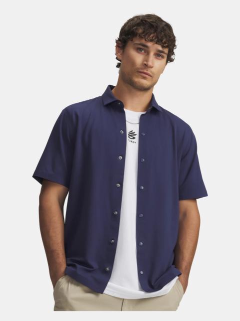 "Everything I put my name on has to be good—it has to help you play and it has to support our mission to change the game for good." – Stephen Curry. This shirt is breathable, comfortable, and has built-in sun protection. Product Details - Lightweight jacquard knit fabric is super breathable & comfortable - Material wicks sweat & dries really fast - UPF 50+ protects your skin from the sun's harmful rays - Odor control technology minimizes odor - Full-length snap front closure - Side-vent hem Size & Fit - Fuller cut for complete comfort. Space & Care - Style #: 6007353 - 43% Rayon/38% Nylon/11% Modal/8% Elastane - Imported