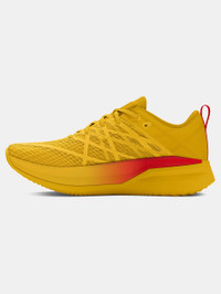 What's it do? There's fast, and then there's UA Flow fast. Lightweight, rubberless, and durable, our newest cushioning gives a close-to-the-ground, grippy feeling of speed as you train to go all out. Product DNA - UA WARP upper uses tape lines that act as mini seatbelts to provide lockdown & lightweight containment - Rocker-inspired design & forefoot rigidity gives you a natural roll to build momentum efficiently - EVA sockliner cradles the foot for enhanced step-in comfort - Lightweight foam midsole provides extremely soft landings with great energy return - Supercritical UA Flow is softer, lighter & more responsive - Full-length Pebax® plate adds support & stability for a snappy ride - Rubberless outsole is super-durable & grippy for a smooth, natural footstrike - Regular - Style #: 3027754 - Offset: 8.5mm - Weight: 8.9 oz. - Lace type: Standard tie - Imported