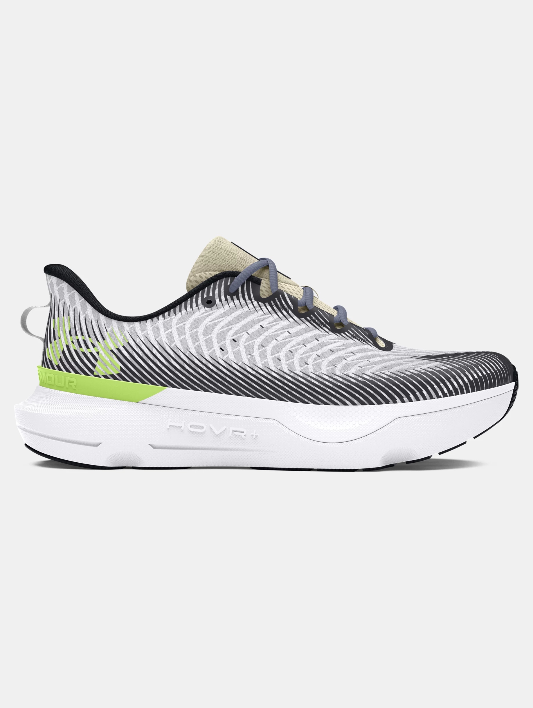 What's it do? Working on your endurance? UA Infinite Pro has the perfect amount of support and new, springy UA HOVR+ cushioning to keep your legs feeling fresh. So, when coach says, "Keep running," you'll be the one pushing the pace. Product DNA - Breathable engineered warp knit upper & zonal structure for containment with 3D haptic print details - Plush collar lining & tongue for enhanced fit & comfort - Heel design helps you land smoothly, lessens impact & increases overall stability - 3D-molded sockliner cradles the foot for enhanced step-in comfort - Extra-springy UA HOVR™+ cushioning reduces impact, returns energy & helps propel you forward - Rubber outsole designed to provide durability & lightweight rebound where needed - Regular - Style #: 3027190 - Offset: 8mm - Weight: 11.5 oz. - Lace type: Standard tie - Imported