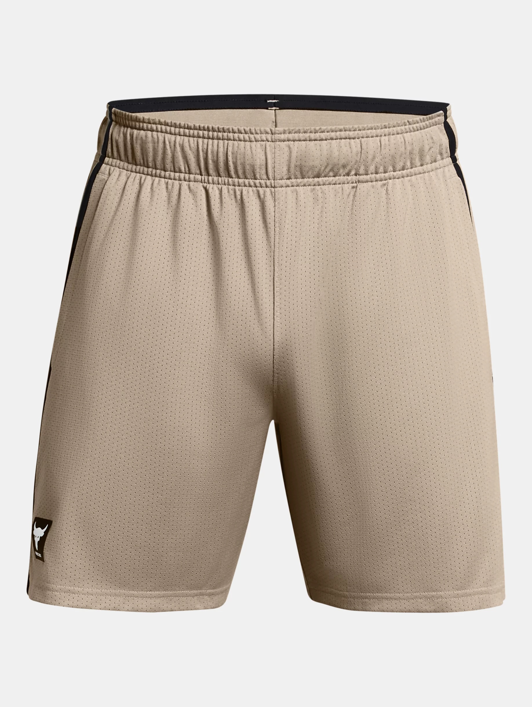 What's it do? Project Rock training gear was built to help you find boundaries, then push right through them. Everything in this collection was personally approved by Dwayne Johnson, the hardest worker in the room. ANY room. Product DNA - All-over, mesh fabric is soft & super-breathable - Encased elastic waistband with internal drawcord - Open hand pockets - Side-vent hem - Loose: Fuller cut for complete comfort. - Style #: 1383192 - Inseam: 7" - Pockets: Yes - 100% Polyester - Imported