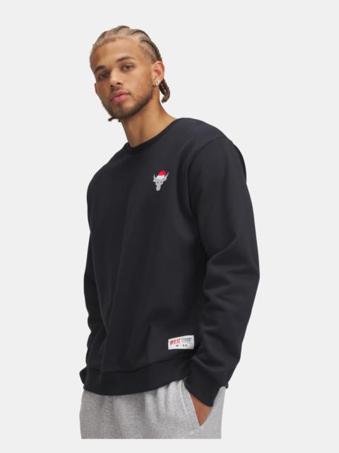 What's it do? Project Rock training gear was built to help you find boundaries, then push right through them. Everything in this collection was personally approved by Dwayne Johnson, the hardest worker in the room. ANY room. Product DNA - Ultra-soft cotton-blend fleece with brushed inside for extra warmth - Ribbed collar, cuffs & bottom hem - Main body fabric engineered to reduce fiber shedding leveraging Under Armour's Fiber Shed Test Method - Loose: Fuller cut for complete comfort. - Style #: 6003007 - 56% Cotton/44% Polyester - Imported