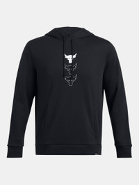 What's it do? Project Rock training gear was built to help you find boundaries, then push right through them. Everything in this collection was personally approved by Dwayne Johnson, the hardest worker in the room. ANY room. Product DNA - Ultra-soft cotton-blend fleece with brushed inside for extra warmth - Front kangaroo pocket - Ribbed cuffs & bottom hem - Main body fabric engineered to reduce fiber shedding leveraging Under Armour's Fiber Shed Test Method - Loose: Fuller cut for complete comfort. - Style #: 1386874 - 56% Cotton/44% Polyester - Imported