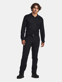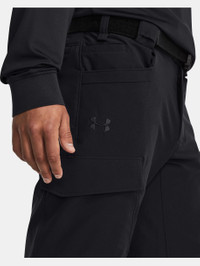 What's it do? These pants give you all the stretchy, lightweight athletic performance you expect from UA, plus all the durability you need for the job. Product DNA - UA Storm technology repels water without sacrificing breathability - Durable woven fabric with soft brushed interior for extra warmth - Stretch-engineered waistband with belt loops & working fly for superior mobility & comfort - Seam design at the knees gives you full range of motion - Open hand & back pockets & secure, flap-closure cargo pockets - Open hand pockets & secure, zip back pockets - Secure, hook & loop closure cargo pockets & additional utility pockets - Badge clip on front belt loops - Loose: Fuller cut for complete comfort. - Style #: 1379199 - Uses a fluorine-free water repellent treatment - Pockets: Yes - 91% Polyester/9% Elastane - Imported