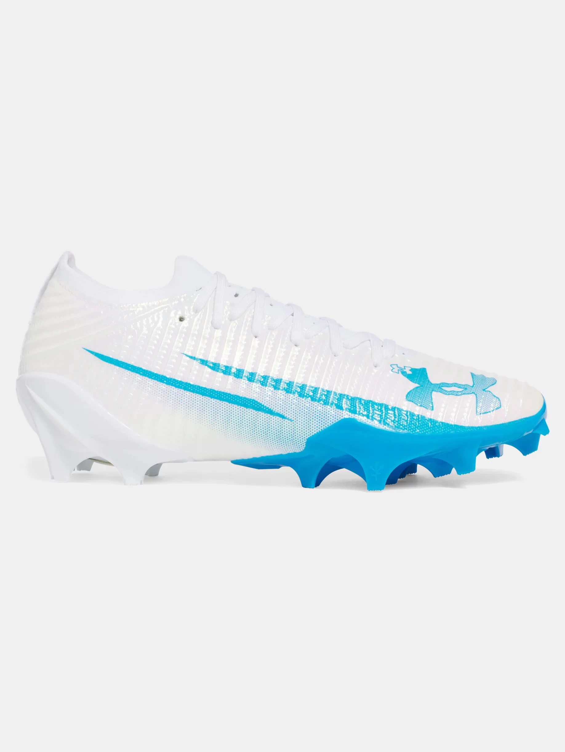 What's it do? Inspired by track spikes, the UA Blur is one of the fastest cleats on the field. It's unique build and flexible design helps you find that extra gear, so you can dominate every inch of the field. Product DNA - Full UA IntelliKnit upper is breathable, light & comfortable with stretch & support where you need it - Ultra-thin TPU skin for lightweight protection & durability - Knit collar for a sock-like fit & added comfort - New UA HOVR™ drop-in midsole provides superior energy return & comfort to keep your feet fresh & fast - New biomechanical plate design gives you a data-driven edge for unmatched speed & agility on the field - Regular - Style #: 3028220 - Weight: 10.7 oz. - Imported
