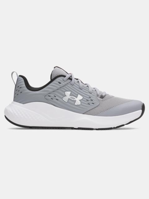 What's it do? These are serious training shoes. There's leather on the top of your foot to keep you stable, flex grooves on the bottom so you can move, and Charged Cushioning® for max impact absorption. All you need to do is work. Product DNA - Lightweight mesh upper with textured overlay details is super-comfortable & breathable - Provides functional support to improve flexibility & stability during dynamic movements - Deluxe Comfort System sockliner molds to your foot for ultimate step-in comfort - Charged Cushioning® midsole absorbs impact & converts it into a responsive burst - Full rubber outsole with strategically placed flex grooves for multi-surface traction & flexibility - Regular - Style #: 3026017 - Offset: 8mm - Weight: 11.92 oz. - Lace type: Standard tie - Imported