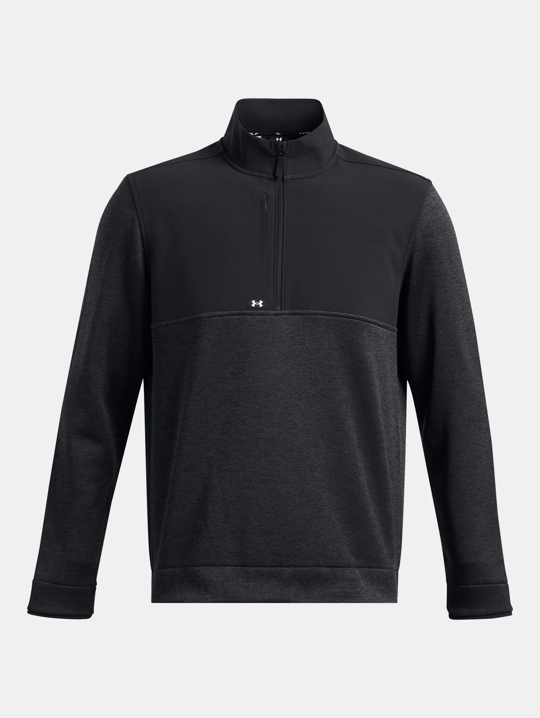 What's it do? We combined the comfort and warmth of a sweater, the performance of our stretchy, lightweight fleece, and the rain protection of a jacket. You'll wear it all season. Product DNA - UA Storm technology repels water without sacrificing breathability - SweaterFleece fabric has a soft, brushed interior with stretch for complete mobility - Woven overlays for added durability & protection - Secure, zip chest pocket - Ribbed details at collar, bottom hem & cuffs - Uses a fluorine-free water repellent treatment - Loose: Fuller cut for complete comfort. - Style #: 1387121 - Body: 100% Polyester - Woven Overlays: 87% Polyester/13% Elastane - Imported