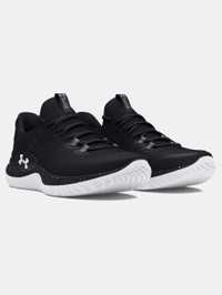 What's it do? UA Dynamic is the ultimate training shoe for the team sports athlete. It combines the bounce and cushioning of a running shoe with the support and grip of a weightlifting shoe, so you can tackle any workout without slowing down. Product DNA - Updated UA IntelliKnit upper provides premium stretch & enhanced breathability - Elevated TPU clip for max support during dynamic movements - Plush heel collar for step-in comfort & a locked-in fit - Internal shank for underfoot support during explosive movements - One-piece Flow midsole provides responsive & long-lasting cushioning - Flow technology eliminates the rubber outsole, creating a more lightweight & seamless ride on any surface - Outsole material is super-durable & increases ground traction - Regular - Style #: 3027177 - Offset: 8mm - Weight: 9.06 oz. - Lace type: Standard tie - Imported