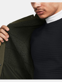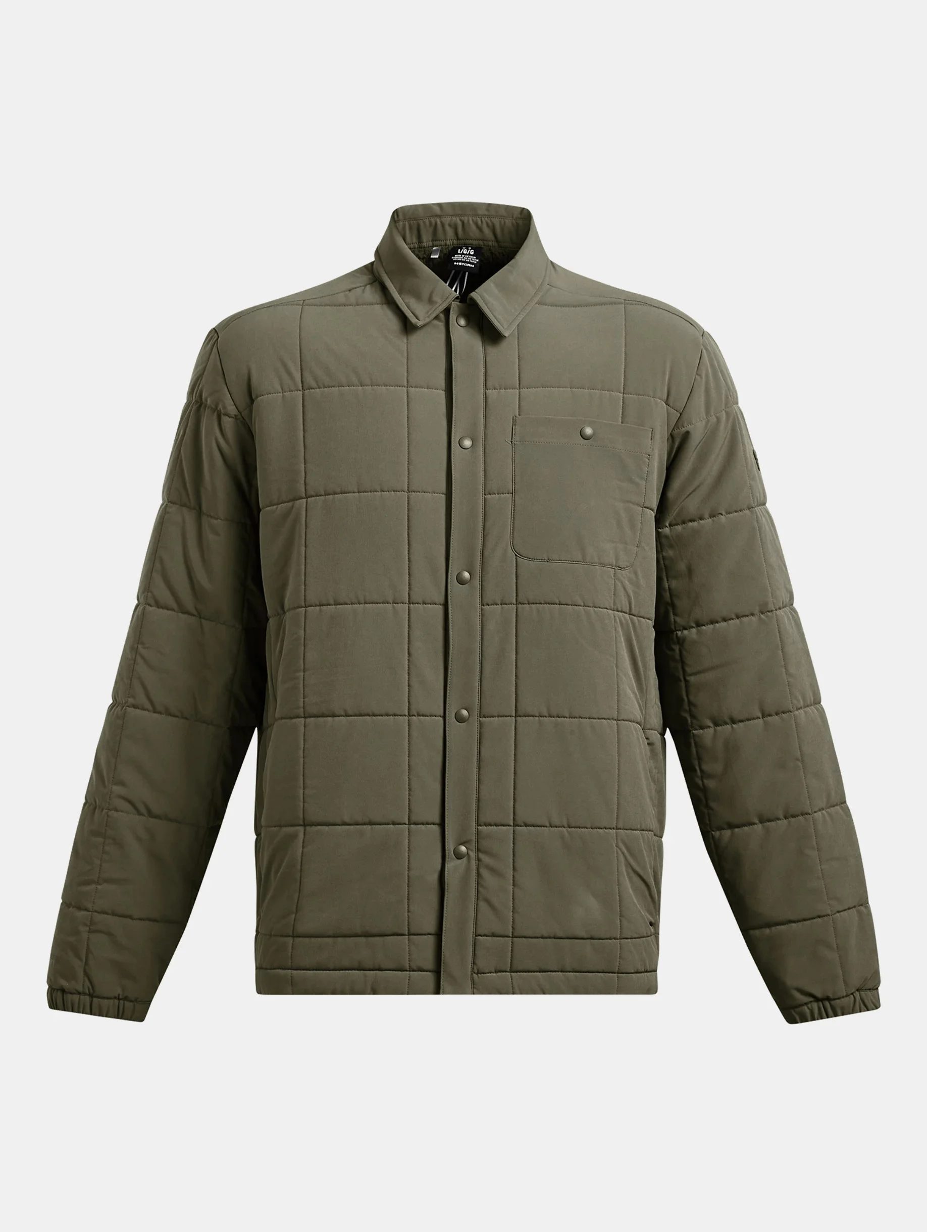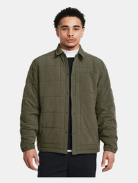 What's it do? The water-resistance and light insulation of a jacket, with snap front closures and the finished look of a shirt. Product DNA - UA Storm technology repels water without sacrificing breathability - Durable stretch-woven exterior with ultra-soft, warm Sherpa interior lining for ultimate comfort - Strategic 80g synthetic insulation in the sleeves for lightweight warmth without any excess bulk - Secure, snap-closure hand pockets & chest pocket - Full-length front snap closures - Encased elastic cuffs - Uses a fluorine-free water repellent treatment - Main body fabric contains at least 80% recycled polyester, excluding trims & embellishments - Loose: Fuller cut for complete comfort. - Style #: 1387030 - Exterior: 87% Polyester/13% Elastane - Interior: 100% Polyester - Imported