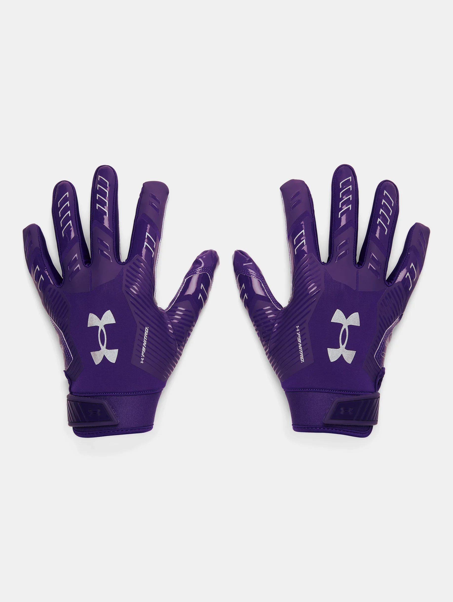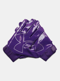 What's it do? The UA F9 football gloves are light, tight, and sticky—in other words, they're built for nothing but catches. Product DNA - Textured TurfGear material on back of hand is ultra-durable & breathable - Silicone print overlays for added support, structure & mobility - UA GlueGrip makes sure your gloves start & stay sticky—providing longer lasting, more consistent tack - Palm wrapover design for enhanced grip & protection on the field - Molded, adjustable closure for a custom, secure fit - Regular - Style #: 1381943 - Meets NFHS/NCAA/SFIA standards - 50% Silicone/50% Nylon - Imported
