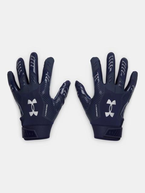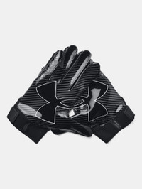 What's it do? The UA F9 football gloves are light, tight, and sticky—in other words, they're built for nothing but catches. Product DNA - Textured TurfGear material on back of hand is ultra-durable & breathable - Silicone print overlays for added support, structure & mobility - UA GlueGrip makes sure your gloves start & stay sticky—providing longer lasting, more consistent tack - Palm wrapover design for enhanced grip & protection on the field - Molded, adjustable closure for a custom, secure fit - Regular - Style #: 1381943 - Meets NFHS/NCAA/SFIA standards - 50% Silicone/50% Nylon - Imported