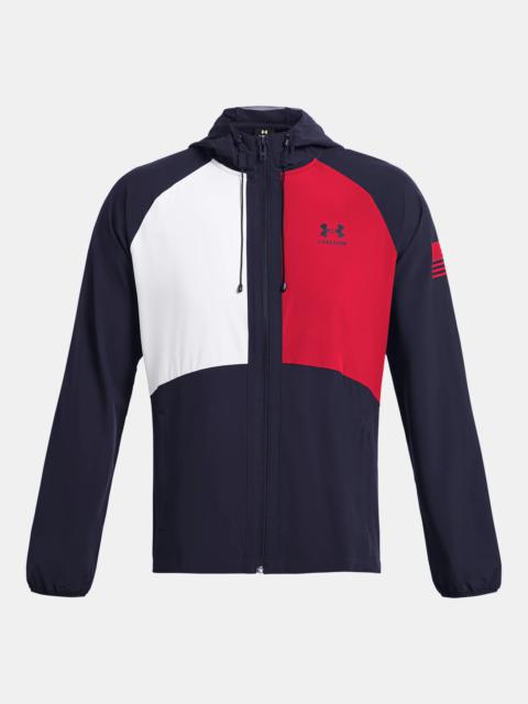 What's it do? UA Freedom's goal is to support and inspire the brave men and women dedicated to protecting us, every day. Product DNA - UA Storm technology repels water without sacrificing breathability - Wind-resistant materials & construction shield you from the elements - Lightweight stretch-woven fabric provides superior mobility & durability - 4-way stretch material moves better in every direction - Generous, 3-panel hood with drawcord adjust - Secure, zip hand pockets & exposed elastic binding at cuffs to help keep sleeves in place - Uses a fluorine-free water repellent treatment - Main body fabric contains at least 80% recycled polyester, excluding trims & embellishments - Fitted: Streamlined fit that’s not too tight or too loose. - Style #: 1382947 - Raglan sleeves - 87% Polyester/13% Elastane - Imported
