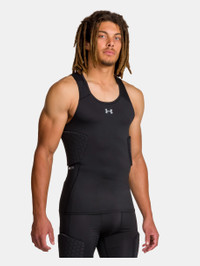 What's it do? The Men's UA Gameday Armour 3-Pad tank features patented McDavid® HEX® technology—the leading protective padding in the game—for protection at the ribs and spine. Product DNA - McDavid® HEX® pads are waterproof, lightweight & ultra-durable, giving you protection where you need it - Padding is welded for sew-free, distraction-free comfort - HeatGear® fabric provides extreme comfort & compression without restriction - 4-way stretch mesh material moves better in every direction - Material wicks sweat & dries really fast - Rib & spine pads - Compression: Ultra-tight, second-skin fit. - Style #: 6007508 - 84% Polyester/16% Elastane - Imported