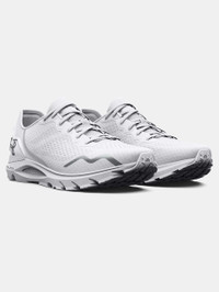 What's it do? Built insanely light and supportive so nothing will hold you back the second coach blows that whistle. Paired with soft, springy UA HOVR™ cushioning that pushes you forward—you'll crush those run drills. Product DNA - Best for: Everyday runs with a light feel - Engineered mesh upper with seamless forefoot for comfort & breathability - External heel counter for lightweight structure & added lockdown - 3D-molded sockliner cradles the foot for enhanced step-in comfort - Responsive UA HOVR™ cushioning reduces impact, returns energy & helps propel you forward - Combination of carbon rubber & blown rubber in the outsole for strategic durability & lightweight rebound - Updated outsole design has flexibility where you need it & disperses impact efficiently for a smooth ride - Regular - Style #: 3026121 - Offset: 8mm - Weight: 9.9 oz. - Lace type: Standard tie - Imported