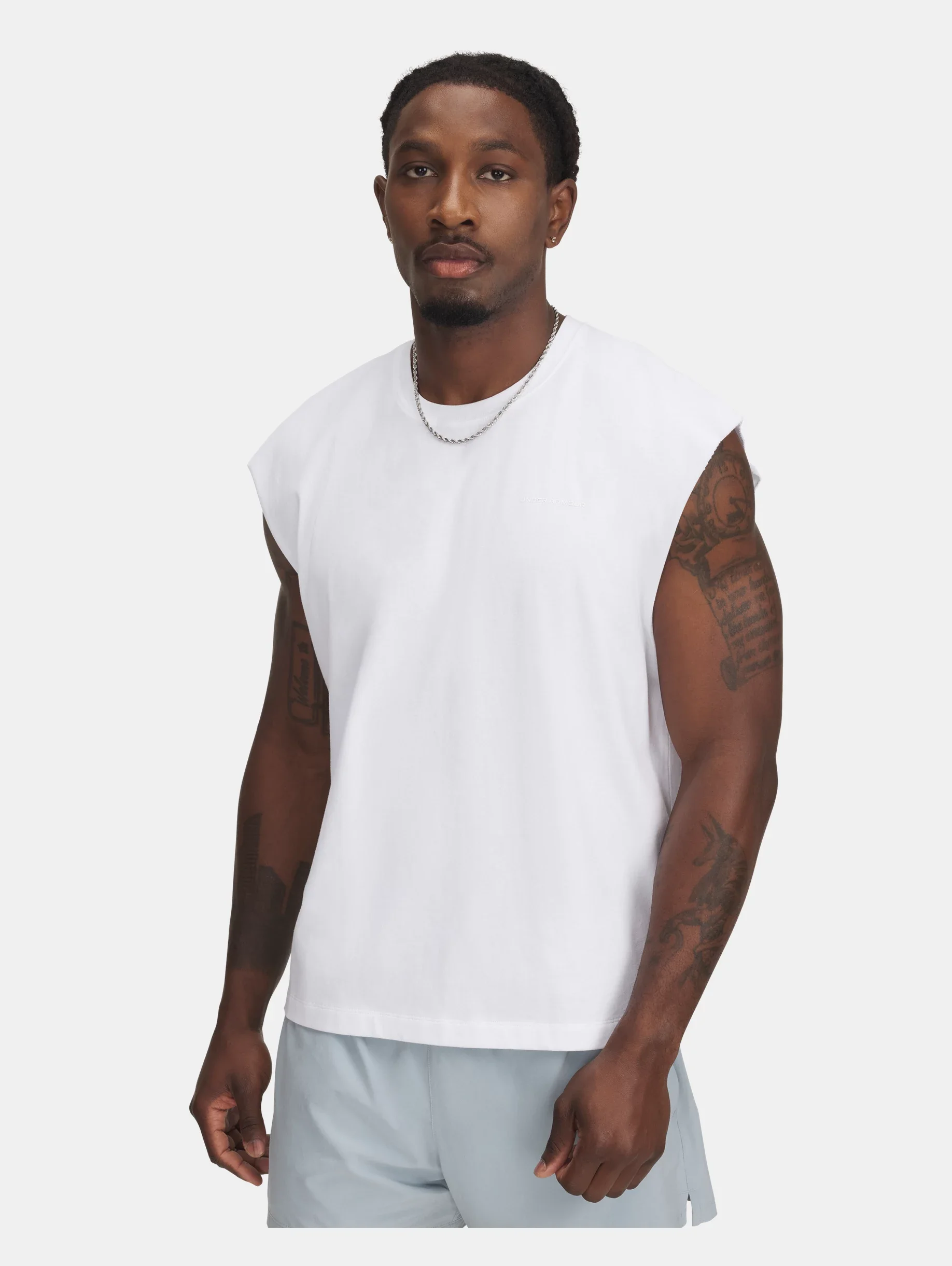 What's it do? This tank is built with a heavyweight cotton-blend fabric for a more substantial feel that is still super-soft and comfortable. Product DNA - Heavyweight, soft cotton-blend fabric provides all-day comfort - Ribbed collar - Raw edge hem on armholes - Main body fabric contains at least 40% recycled polyester, excluding trims & embellishments - Loose: Fuller cut for complete comfort. - Style #: 1390241 - Raised silicone branding - 60% Cotton/40% Polyester - Imported