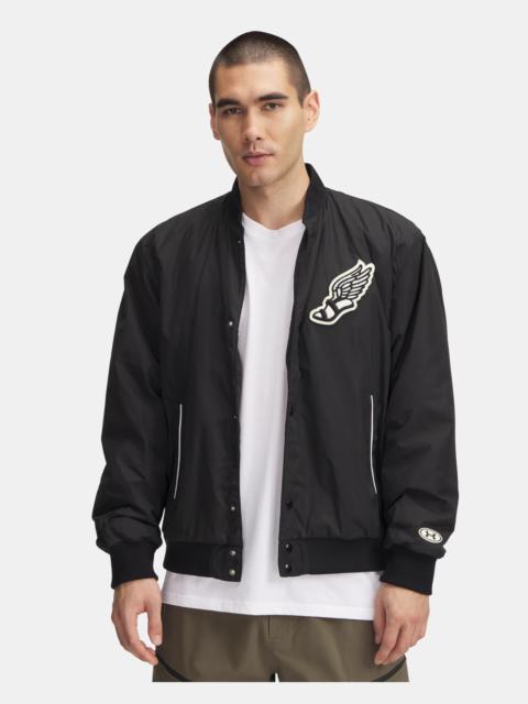 What's it do? This jacket gives you warmth without bulk, protection from the elements, and pockets on the outside and inside with a classic, clean varsity look. Product DNA - UA Storm technology repels water without sacrificing breathability - Lightweight woven fabric with shine finish delivers superior comfort & durability - Diamond quilted lining on body & all-over 60g synthetic insulation for lightweight warmth without bulk - Full-length snap-closure front - Open hand pockets & interior chest pocket - Ribbed collar, cuffs & bottom hem - Uses a fluorine-free water repellent treatment - Loose: Fuller cut for complete comfort. - Style #: 6003810 - 100% Polyester - Imported