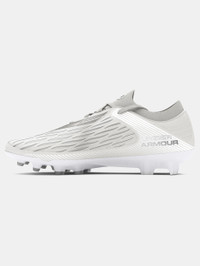 What's it do? The UA Magnetico Elite 4 cleat adapts to your foot's shape and movements for a customized fit and locked-in feel. Maximize every touch for total control on the pitch. Product DNA - UA Clone upper provides a truly customized fit, no matter your foot size - An internal layer of flexible, auxetic material molds around the foot for a precise, glove-like fit & feel - 3D print for additional touch & control & silicone strike zone for maximum control when shooting - Knit collar & tongue for a sock-like fit with premium internal foam for heel hold & added comfort - Asymmetrical tongue allows for additional space on the medial side for control, passing & shooting - Lightweight soleplate with mixed stud control outsole for multi-directional movement - Enhanced stud shape mitigates pressure & provides optimum traction - Regular - Style #: 3027700 - Weight: 9.6 oz. - Lace type: Standard tie - Imported