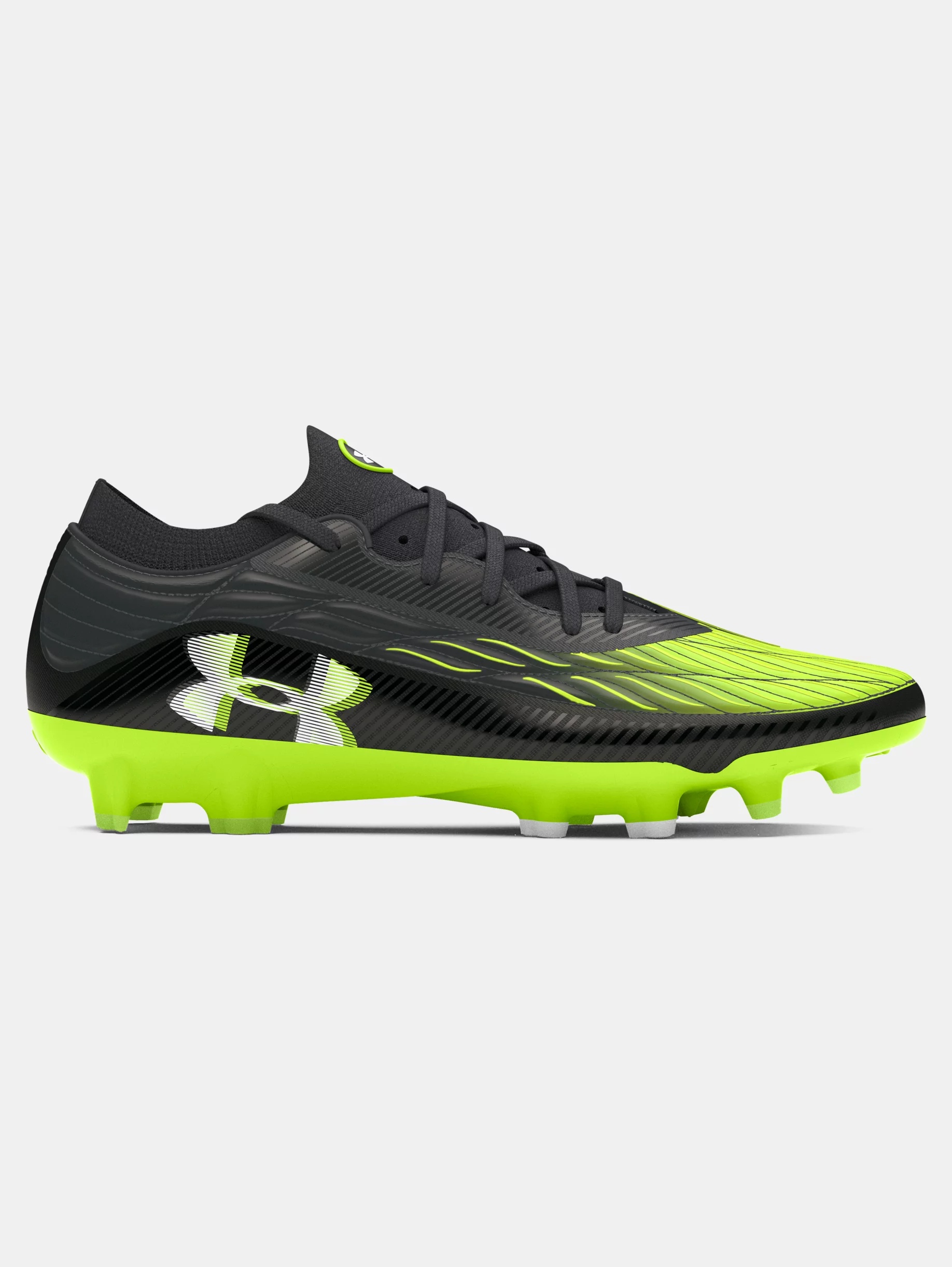 What's it do? The UA Magnetico Elite 4 cleat adapts to your foot's shape and movements for a customized fit and locked-in feel. Maximize every touch for total control on the pitch. Product DNA - UA Clone upper provides a truly customized fit, no matter your foot size - An internal layer of flexible, auxetic material molds around the foot for a precise, glove-like fit & feel - 3D print for additional touch & control & silicone strike zone for maximum control when shooting - Knit collar & tongue for a sock-like fit with premium internal foam for heel hold & added comfort - Asymmetrical tongue allows for additional space on the medial side for control, passing & shooting - Lightweight soleplate with mixed stud control outsole for multi-directional movement - Enhanced stud shape mitigates pressure & provides optimum traction - Regular - Style #: 3027700 - Weight: 9.6 oz. - Lace type: Standard tie - Imported