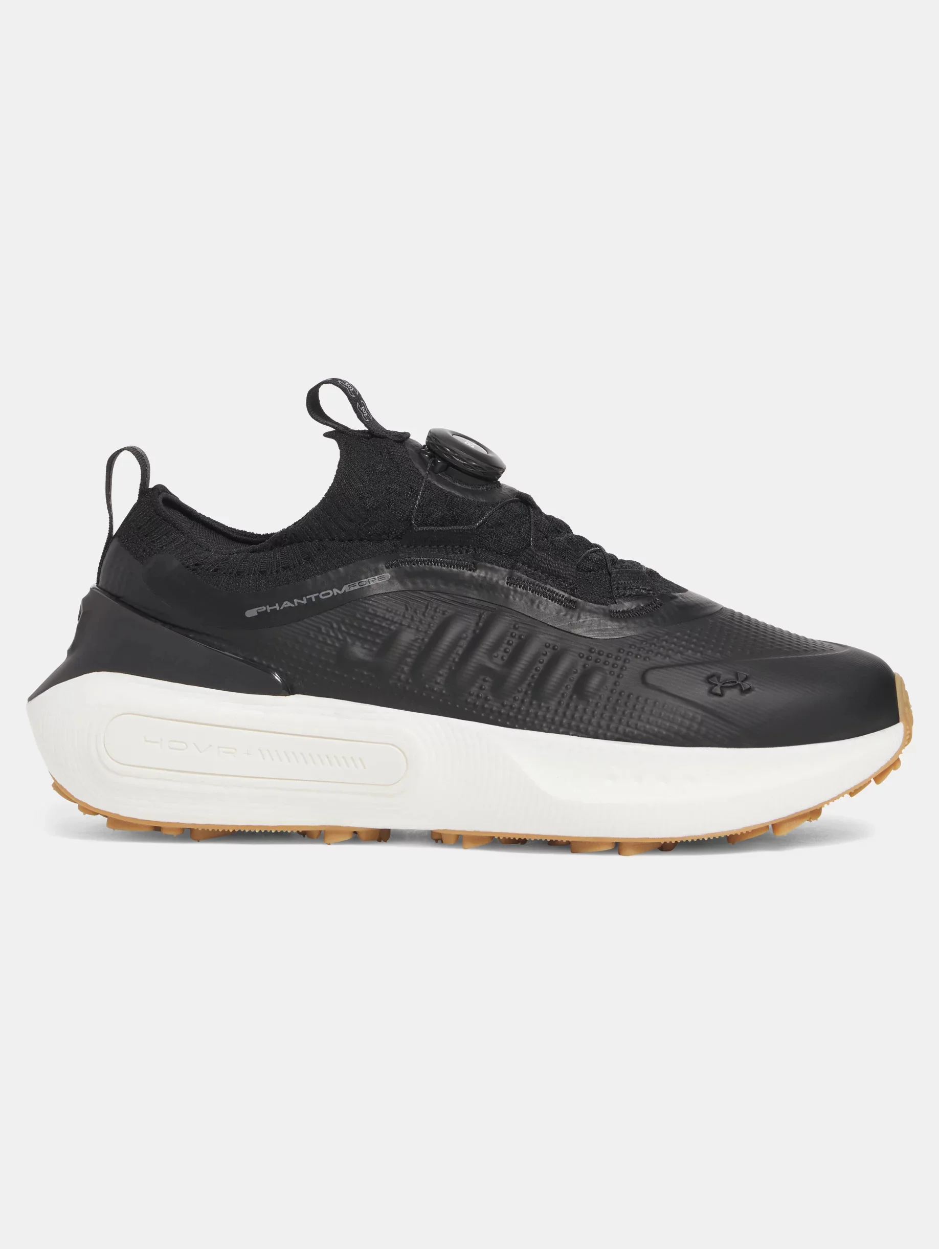 What's it do? Go from the green to the clubhouse. We took the comfort of your favorite sneaker, added directional rubber studs for ultimate traction, and a water-resistant design so your feet stay dry. This is your new go-to golf shoe. Product DNA - Soft, molded TPU-coated foam upper with knit collar & tongue for a sock-like fit & step-in comfort - Lightweight waterproof membrane & NeverWet™ treated knit to keep you cool & dry on damp days - BOA® Fit System provides micro-adjustable, personalized fit, one click at a time - Supportive TPU heel counter & heel pull for easy on/off - Extra-springy UA HOVR™+ cushioning reduces impact, returns energy & helps propel you forward - Durable rubber outsole with rotational resistant traction pattern - Wide - Style #: 3028238 - 1 year waterproof warranty - Lace type: BOA® - Imported