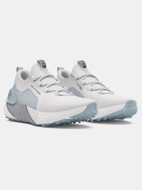 What's it do? Go from the green to the clubhouse. We took the comfort of your favorite sneaker, added directional rubber studs for ultimate traction, and a water-resistant design so your feet stay dry. This is your new go-to golf shoe. Product DNA - Lightweight, breathable knit upper with strategic reinforcements to support the golf swing - Lightweight waterproof membrane & NeverWet™ treated upper to keep you cool & dry on damp days - Knit collar for ease of entry & a plush feel with an external heel counter for stable support - Ultra-breathable, SpeedForm® 2.0 sockliner provides softer underfoot support - Responsive UA HOVR™ cushioning reduces impact, returns energy & helps propel you forward - Durable, high-traction rubber outsole with strategic pattern for directional support - Regular - Style #: 3027485 - 1 year waterproof warranty - Weight: 12.3 oz. - Lace type: Standard tie - Imported