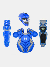 Product DNA - Chest Protector (15.5"): Over-the-shoulder protection with adjustable shoulder caps - Extra protection in throat, sternum & shoulders - AEGIS Microbe Shield helps remove unwanted bacteria & odor - Leg Guards (14.5"): High impact plastic for ultimate durability & protection - Large vent holes for added breathability & AEGIS Microbe Shield helps remove unwanted bacteria & odor - Strap harness for added back-of-knee comfort - Helmet (6 ¼ - 7): High-impact ABS plastic with large ventilation & a durable steel cage - Removable/washable liner - One Size Fits All - Style #: 1363174 - Includes: helmet, chest protector & leg guards - Pro 4 Series chest protector & helmet meet NOCSAE standards - Imported