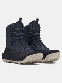 What's it do? If you're heading out on steep terrain, these are the hunting boots you want. They're waterproof, abrasion-resistant, supportive, and light—with Charged Cushioning® for impact and new Vibram Traction Lugs for incredible grip. Product DNA - Premium waterproof leather upper & breathable waterproof liner for added protection against the elements - Haptic PU overlays & molded rubber toe cap provide lightweight, durable abrasion resistance - Speed lacing eyelets & a secure lace hook provide fast & secure ankle support & easy on/off - Flexible achilles notch for added comfort - Molded Contoura™ Support footbed with shock-absorbing foam for all day comfort - Responsive UA HOVR™ cushioning reduces impact, returns energy & helps propel you forward - Hardened foam plate for stability while side-hilling & underfoot protection from sharp rocks & terrain - Vibram® outsole with Traction Leg technology & MegaGrip rubber compound for best-in-class traction on any terrain - Regular - Style #: 3027682 - Height: 8" - Weight: 23.4" - Lace type: Standard tie - Imported