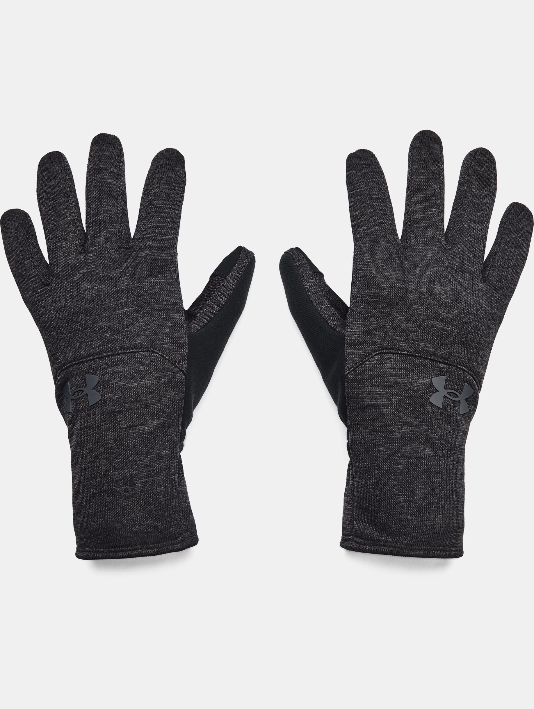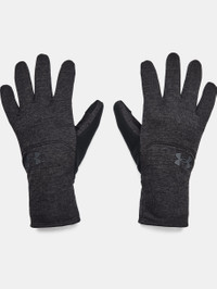 What's it do? Your new go-to gloves. The inside is warm and soft and the outside repels rain and snow. Product DNA - UA Storm technology repels water without sacrificing breathability - Soft sweater-fleece exterior fabric with heathered look - Brushed Armour Fleece® interior lining traps heat to keep you warm & comfortable - Conductive suede tips on thumb & index finger so you can use devices without taking your gloves off - Extra soft Speedwipe™ fleece placed on back of thumb - Microfiber palm pad for added grip & durability - Extended wrist cuff for added coverage & warmth - Uses a fluorine-free water repellent treatment - Regular - Style #: 1365958 - 100% Polyester - Imported